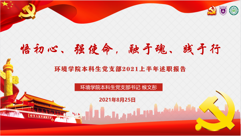 第二个环节,缑文彤作题为"悟初心、强使命,融于魂、践于行"述职报告,回顾了2021年上半年支部的工作情况及建设成果。在支部建设方面,支部坚持实行"三会一课"制度,结合党史学习教育主题,深入开展"两学一做"常态化学习教育活动,通过建立《入党积极分子成长档案》进一步完善了入党积极分子管理制度;在党史学习教育方面,支部认真贯彻"学史明理、学史增信、学史崇德、学史力行"要求,围绕献礼建党100周年开展"星火菁英计划"应知应会每日分享,组织党员学习"美丽中国 红色筑梦"系列党团课,积极开展"美丽中国 红船筑梦"系列党团实践活动。支部党员赴南京市红山动物园和南京仙林外国语小学开展生物多样性科普调研,以实际行动助力绿色可持续发展,通过开展"诵红色经典,忆百年征程"诗歌朗诵会、"百年征程,携手逐梦"师生联谊拔河赛、采访澳门博彩官网 老党员同志等,引导支部成员在实践中感悟党史教育精神、锤炼党性修养、汲取初心力量,将红船精神融于魂、践于行,2021年,党支部荣获南京大学"先进基层党支部"荣誉称号。针对工作中存在的特色活动创新性有待提升以及志愿活动覆盖面窄等问题,缑文彤提出下半年将加强与澳门博彩官网 团学组织的联动,打造富有专业特色的本科生支部品牌活动。