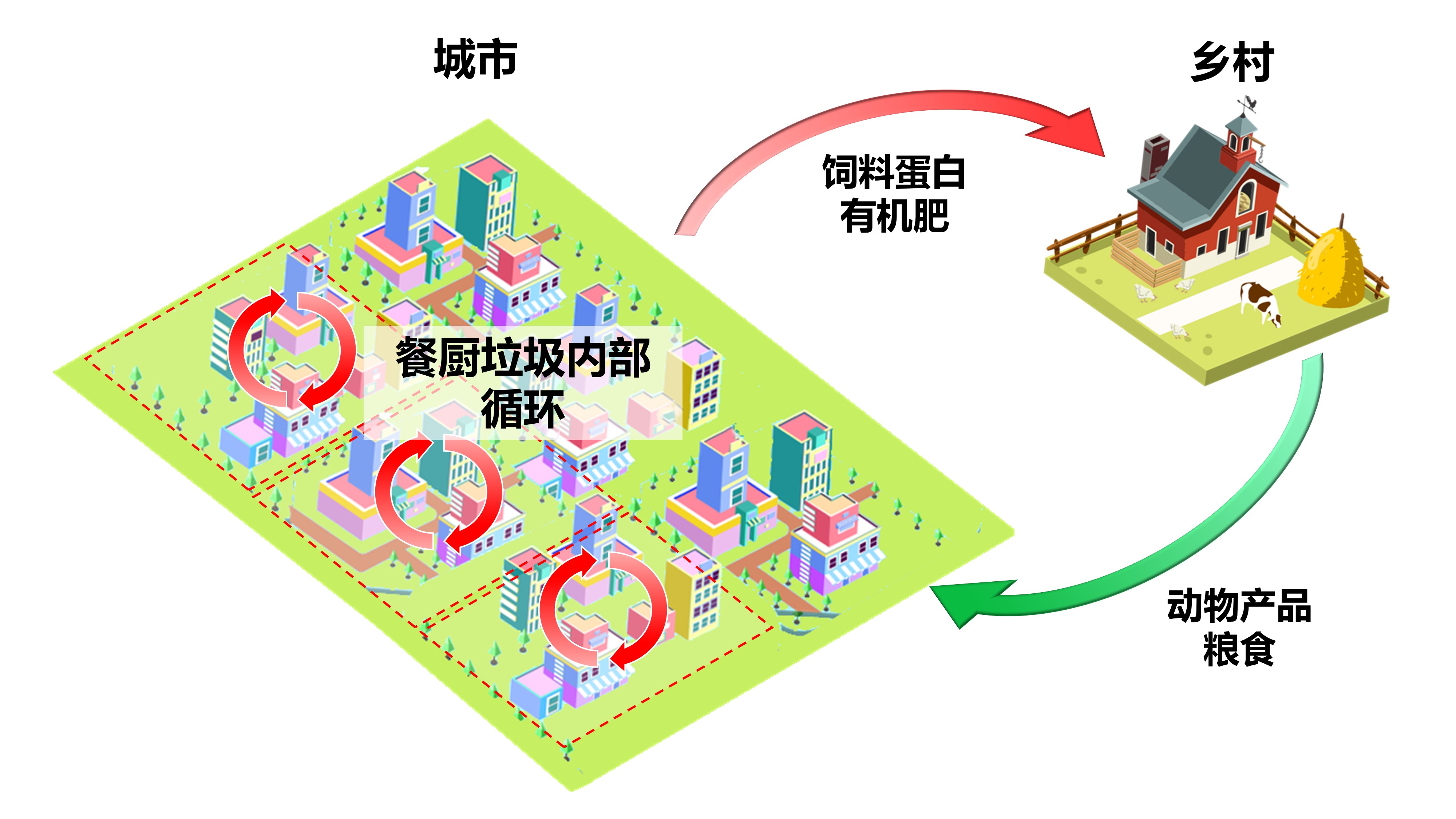餐厨垃圾产量多、臭气大,实现其资源化利用是我国"无废城市"建设的关键目标。然而主流技术无法去除食物中的盐分,资源化率极低。在各种新技术中,黑水虻转化法资源化率和经济价值最高,但由于依赖额外饲料、产生污染多、占地面积大等问题,仍然无法应用于城市。