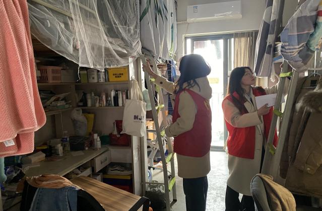 在检查过程中,辅导员和志愿者们对床铺护栏高度、扶梯稳固情况、宿舍用电安全、消防安全等方面进行全方位排查,经检查发现,同学们普遍能够遵守宿舍安全管理规定,自觉营造安全温馨的生活环境,但个别宿舍存在学生床位护栏、爬梯等部件存在松动、上层床位床垫较厚、宿舍无人情况下插线板电源未切断等33处潜在安全隐患,志愿者们将检查结果汇总后上报宿管处,由其安排物业进行维修。