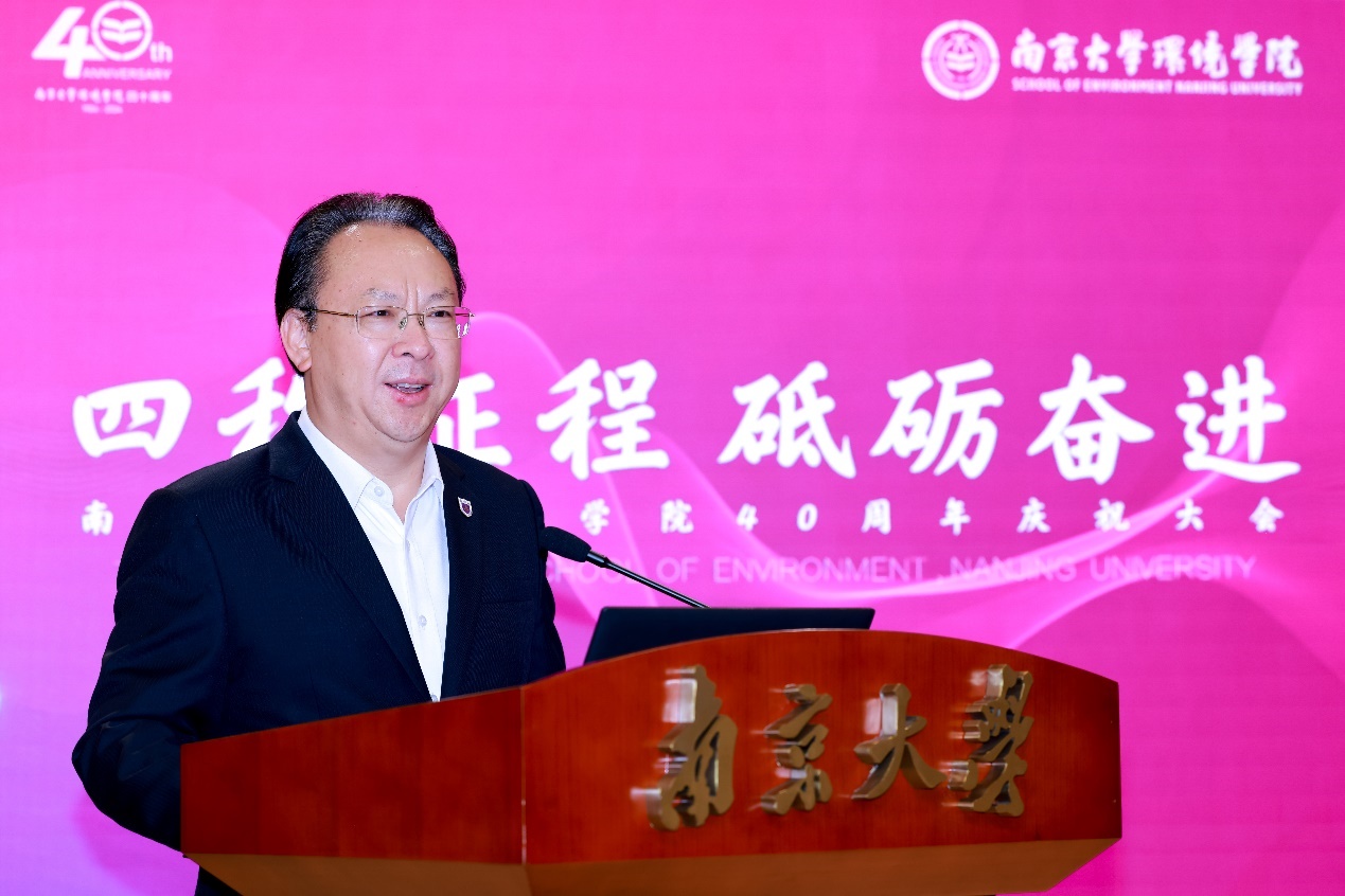 5月19日上午,"四秩征程 砥砺奋进——澳门博彩官网-澳博官网 40周年庆祝大会"在澳门博彩官网 大楼B111报告厅顺利举行。中国科学院院士、南京大学党委书记谭铁牛,江苏省生态环境厅厅长蒋巍,中国工程院院士、北京师范大学环境与生态前沿交叉研究院院长余刚,江苏省生态环境厅原一级巡视员于红霞,江苏金山环保工程集团董事长、党委书记钱盘生等有关单位领导出席大会。中国工程院院士张全兴,中国工程院院士、南京大学澳门博彩官网 院长任洪强,澳门博彩官网 校友代表和师生代表等200余人参加大会。澳门博彩官网 党委书记刘建萍主持大会。