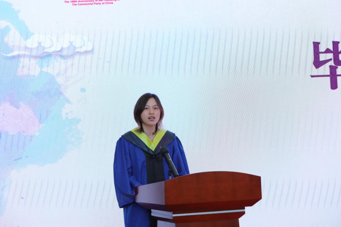 2021届硕士吴赟作为毕业生代表,深情地回顾了在环院学习、科研、生活七年时光的蜕变与成长,表达了对学校、澳门博彩官网 和师友的不舍与感恩之情,""诚朴雄伟,励学敦行"的校训犹在耳畔,"嚼得菜根,做得大事"的誓言萦绕于心,七年的南大生活,教会我们的不仅是学识,更教会了我们坚持与担当!"